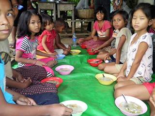 Apart from the widespread destruction of roads, homes and livelihoods, the recent flooding in Cambodia has disrupted the start of the new academic year. Many schools have only just returned after the long holiday and some, like Kbal Spean and Pongro [both about 5 miles from Svay Sisophon] are still experiencing floodwater very close to the school premises. But our Cambodian friends are very resilient and enterprising and so life goes on: teaching and learning, tuck shop, playtime, lunch….just like schools everywhere. The raised driveway you see in the first picture was made possible several years ago mostly by contributions from the former St John’s Catholic Infant School, Norwich. Without this driveway, there is no access to the school at all.